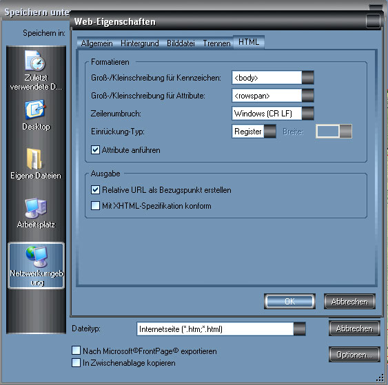 Jetzt nur noch unter Datei --> Für Web Speichern-> als HTML ... abspeichern.